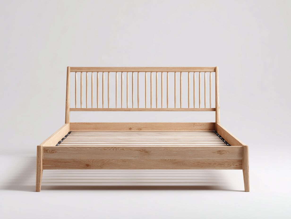 Letto matrimoniale dal design nordico essenziale, ideale per creare un ambiente notte luminoso e ordinato. La struttura lineare e l'estetica naturale si integrano facilmente in diversi contesti abitativi, offrendo comfort e praticità.