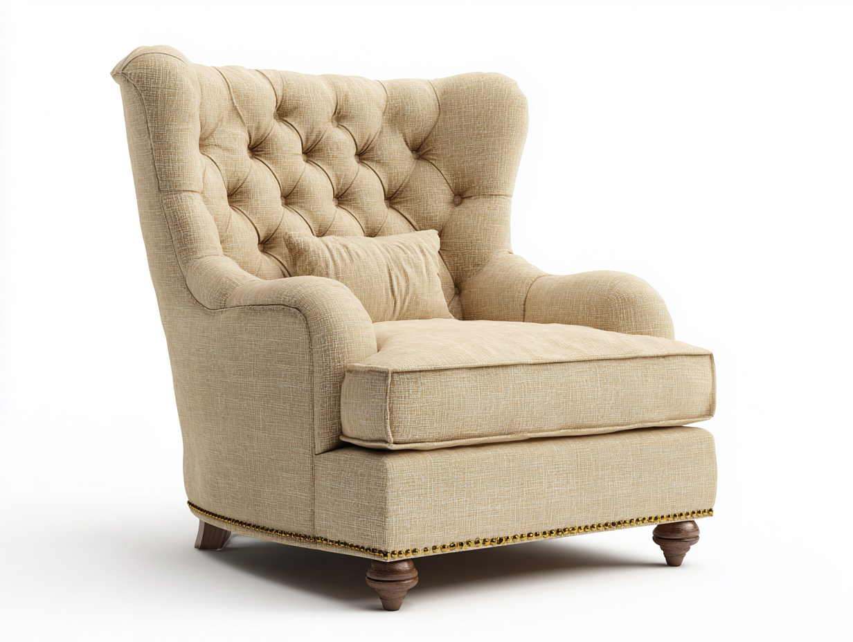 Questa poltrona è caratterizzata da uno schienale alto con lavorazione capitonné e braccioli ampi e arrotondati, che creano una forma accogliente e ben proporzionata. Il design classico la rende adatta a diversi ambienti interni, offrendo una seduta comoda e una presenza visiva equilibrata.